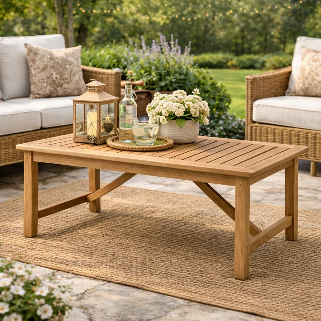 Mesa exterior rectangular de madera natural